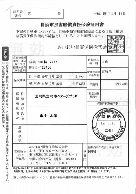 - 弊社取り扱いの自賠責保険であれば、弊社で再発行手続きをとります。